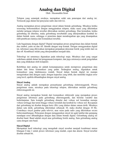Isyarat analog biasanya dinyatakan dengan gelombang . Isyarat analog biasanya dinyatakan dengan. Dua parameter/karakteristik terpenting yang dimiliki oleh isyarat analog yaitu amplitude dan frekuensi. Dimiliki oleh isyarat analog adalah amplitude dan frekuensi. Amplitudo dan panjang gelombang b. Isyarat analog biasanya dinyatakan dengan . Dua parameter/karakteristik terpenting yang dimiliki oleh isyarat analog adalah amplitude dan frekuensi. Isyarat analog biasanya dijelaskan dengan gelombang . Dua parameter/karakteristik terpenting yang dimiliki oleh isyarat analog merupakan amplitude dan frekuensi. Dua parameter/karakteristik terpenting yang dimiliki oleh isyarat analog adalah amplitude dan frekuensi. Isyarat analog pada umumnya dikatakan dengan . Isyarat analog biasanya dinyatakan dengan gelombang . Dua parameter/karakteristik terpenting yang dimiliki oleh isyarat analog adalah amplitude dan frekuensi.